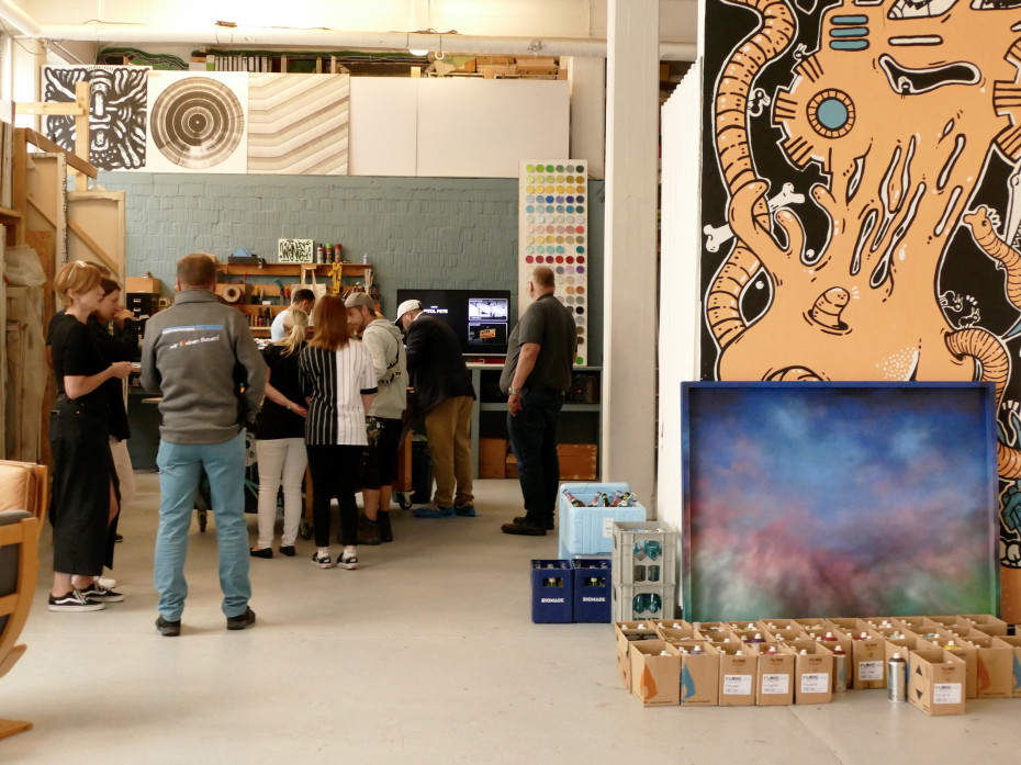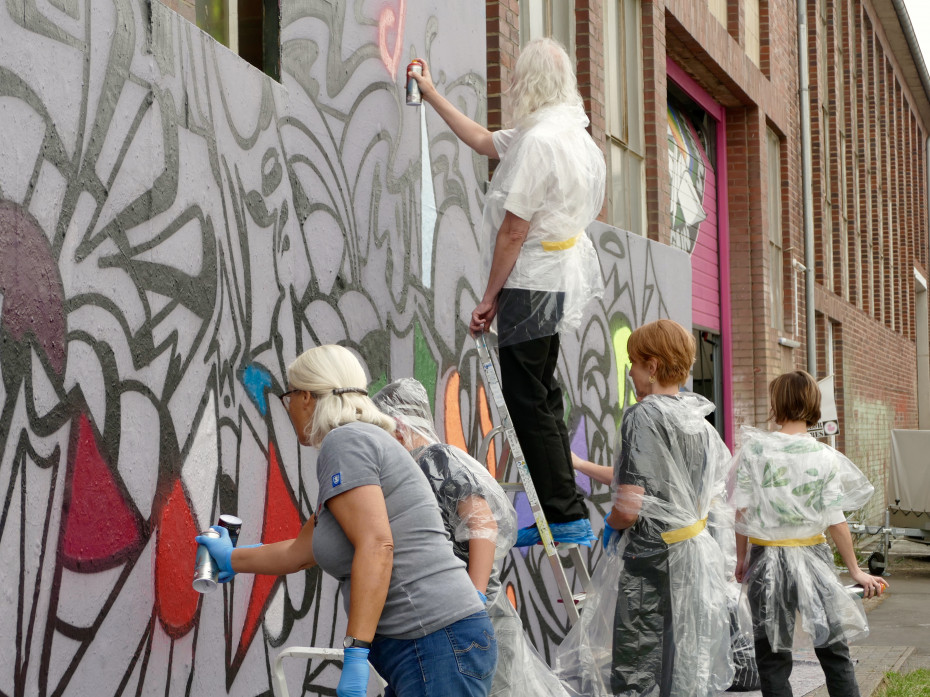 Im Juni ging es für uns ins Kasseler Schillerviertel für einen Graffiti-Workshop bei den professionellen Sprayern von Kolorcubes. Nachdem wir mit einem leckeren Buffet und Getränken begrüßt wurden, haben wir bei einem kurzen theoretischen Teil die Grundkenntnisse über das Sprayen gelernt. Wo werden die Dosen gekauft und welcher Sprühkopf eignet sich am besten?Anschließend hieß es: „An die Sprühdosen, fertig, los“. An einer großen Wand mit vorgegebenen Linien, haben wir mit den unterschiedlichsten Dosen und Farben gesprayt und uns künstlerisch ausgetobt. Das Ergebnis kann sich sehen lassen!