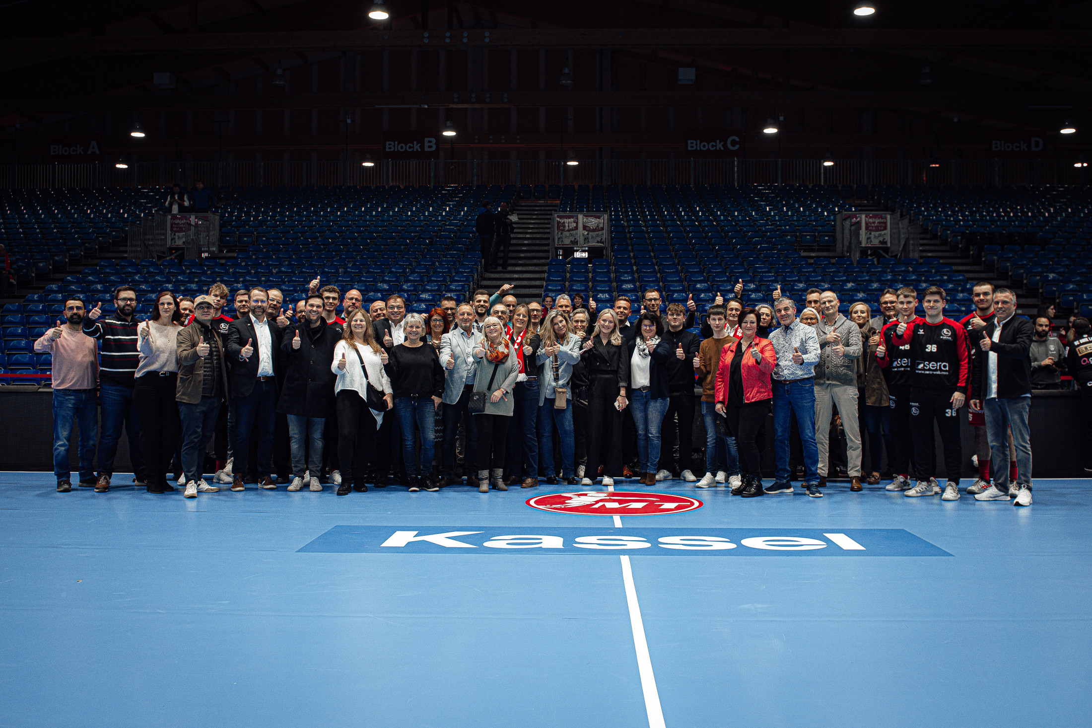 Umso mehr haben wir uns gefreut, einen Abend lang hinter die Kulissen des erfolgreichen Vereins blicken zu dürfen. Beim offenen Netzwerken im VIP-Club nutzten wir die Gelegenheit zum persönlichen Austausch mit Abwehrspezialist und Nationalspieler Finn Lemke. Für die richtige Stärkung sorgte das Catering von den Fliegenden Köchen in der Business Lounge, bevor es anschließend für uns selbst aufs Spielfeld ging (natürlich nur eine Begehung – das Handball-Spielen überlassen wir lieber den Profis)…