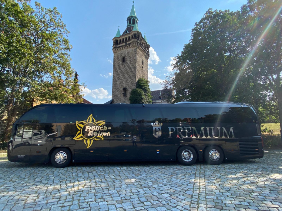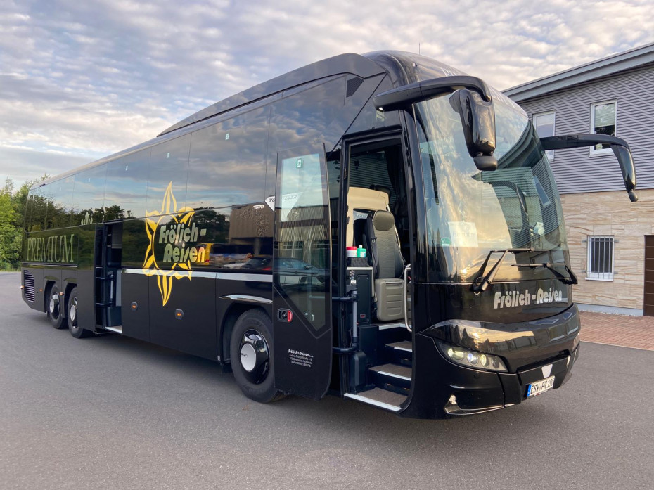 Seit 2019 bietet Frölich-Reisen erfolgreich Premiumreisen an, die sich neben dem einmaligen Buskomfort durch weitere exklusive und ausgesuchte Leistungen auszeichnen. Bereits beim Einsteigen in den Premiumbus merkt der Gast ein neues Raumgefühl: Breite Gänge, eine 2+1-Bestuhlung mit nur drei Komfortsesseln in einer Reihe und großzügigem Sitzabstand bis zu einem Meter mit 31 Fahrgastplätzen auf 13,5 Metern Buslänge versprechen ein komfortables Reisen. Mit dabei ist immer der nordhessische Sternenhimmel im Bus, der Fahrten bei Dunkelheit zu einem einmaligen Erlebnis macht.